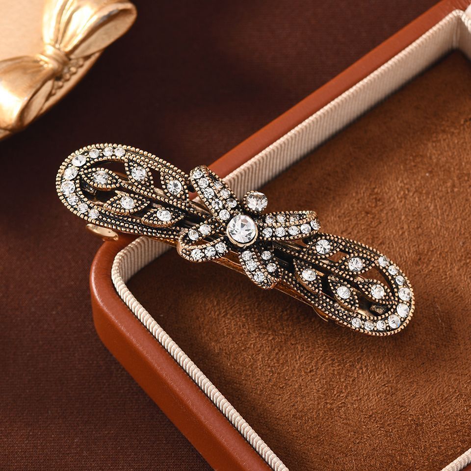Vintage Ancient Gold Laurel Goddess Small Spring Clip Hairpin French Rhinestone 6.5cm Top Clip for Women