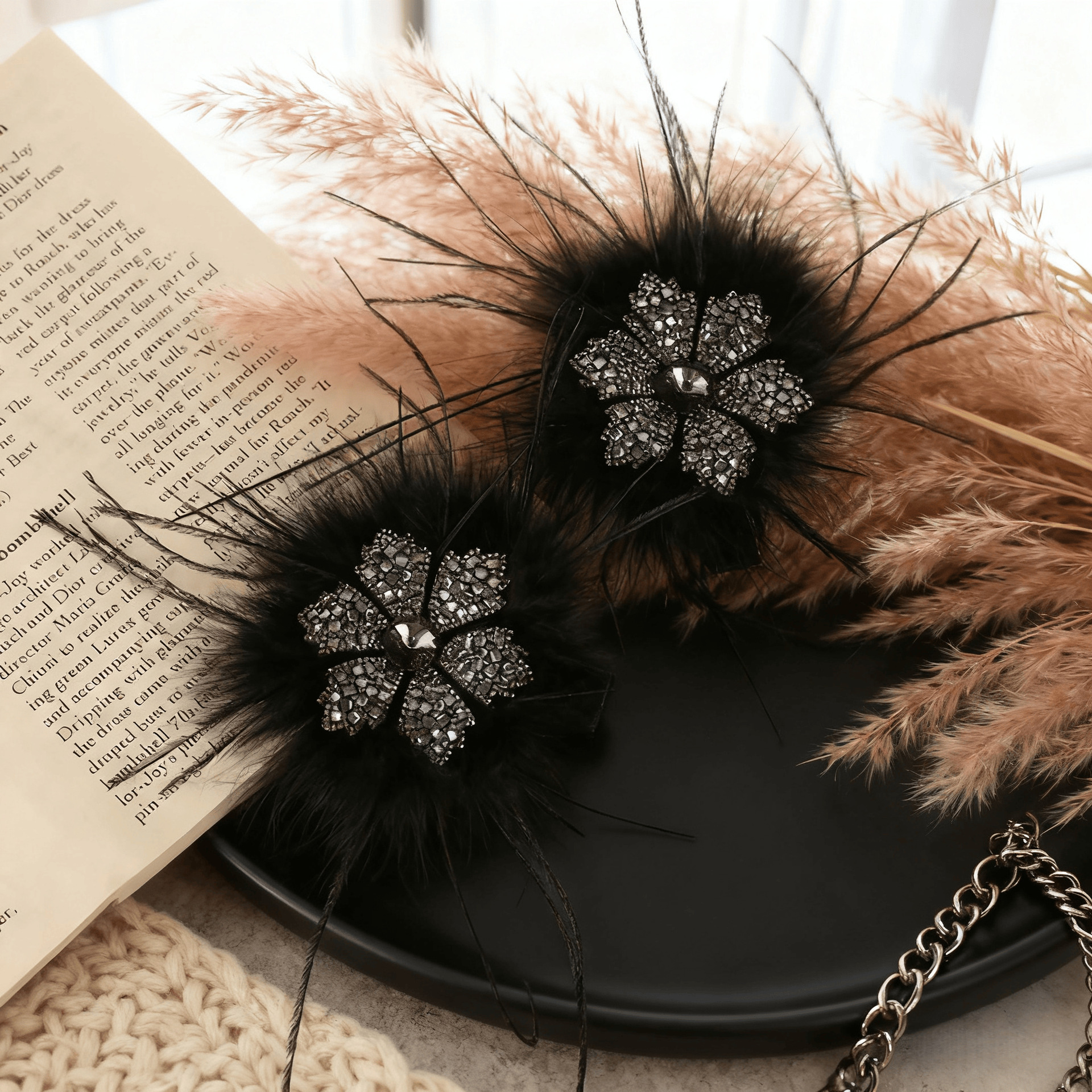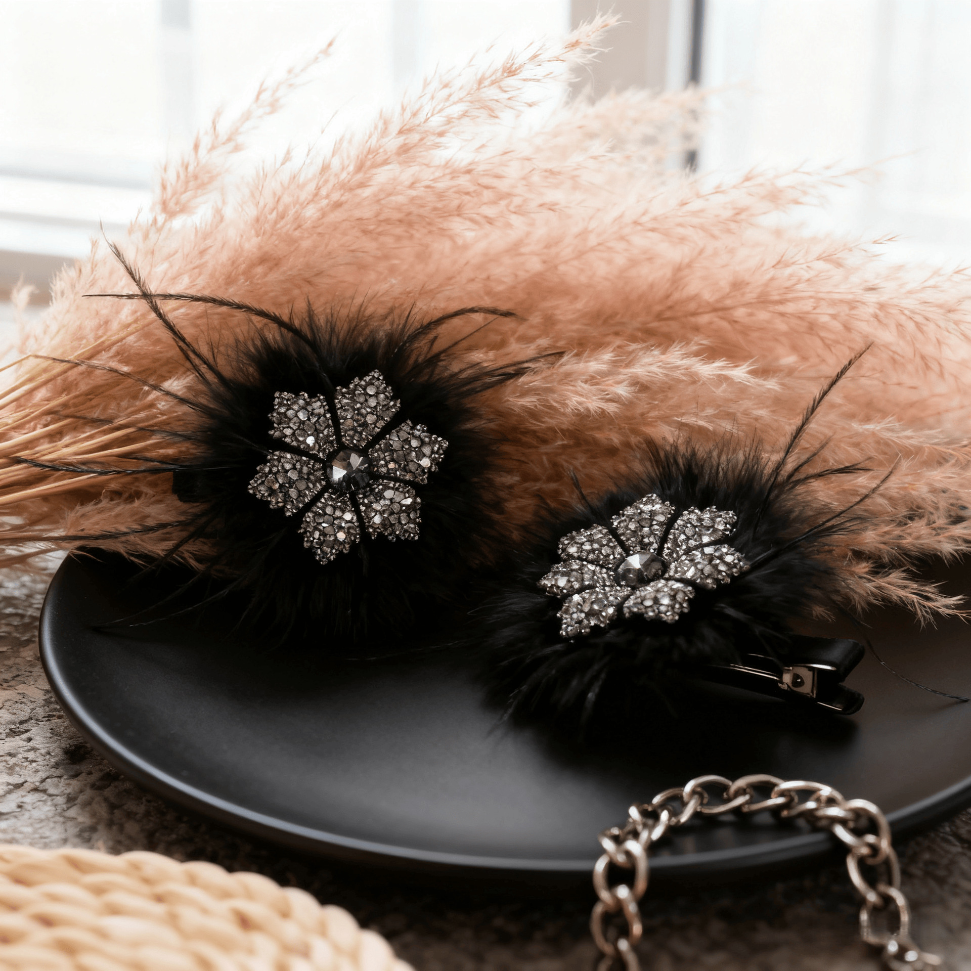 Autumn and Winter Black Feather Snowflake Duckbill Clip Plush Exquisite Side Clip Women's 2025 New Classy Broken Hair Hairpin