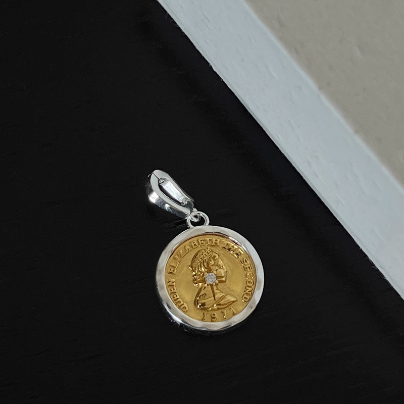 Myskar S925 Sterling Silver British Relief Figure Pendant Heavy Craft Gold and Silver Contrast Color Retro Victory Goddess Necklace