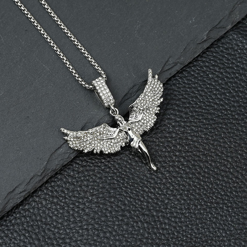 Full Diamond Angel Goddess Spreadwing Three-Dimensional Feather Fallen Angel Pendant Rap Hip-Hop Trendy Men's Clavicle Chain Ins
