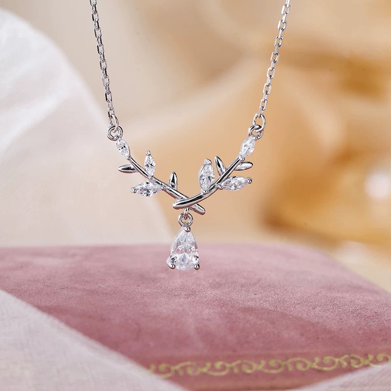 S999 sterling silver laurel goddess necklace light luxury retro design branch water drop clavicle chain jewelry wholesale women