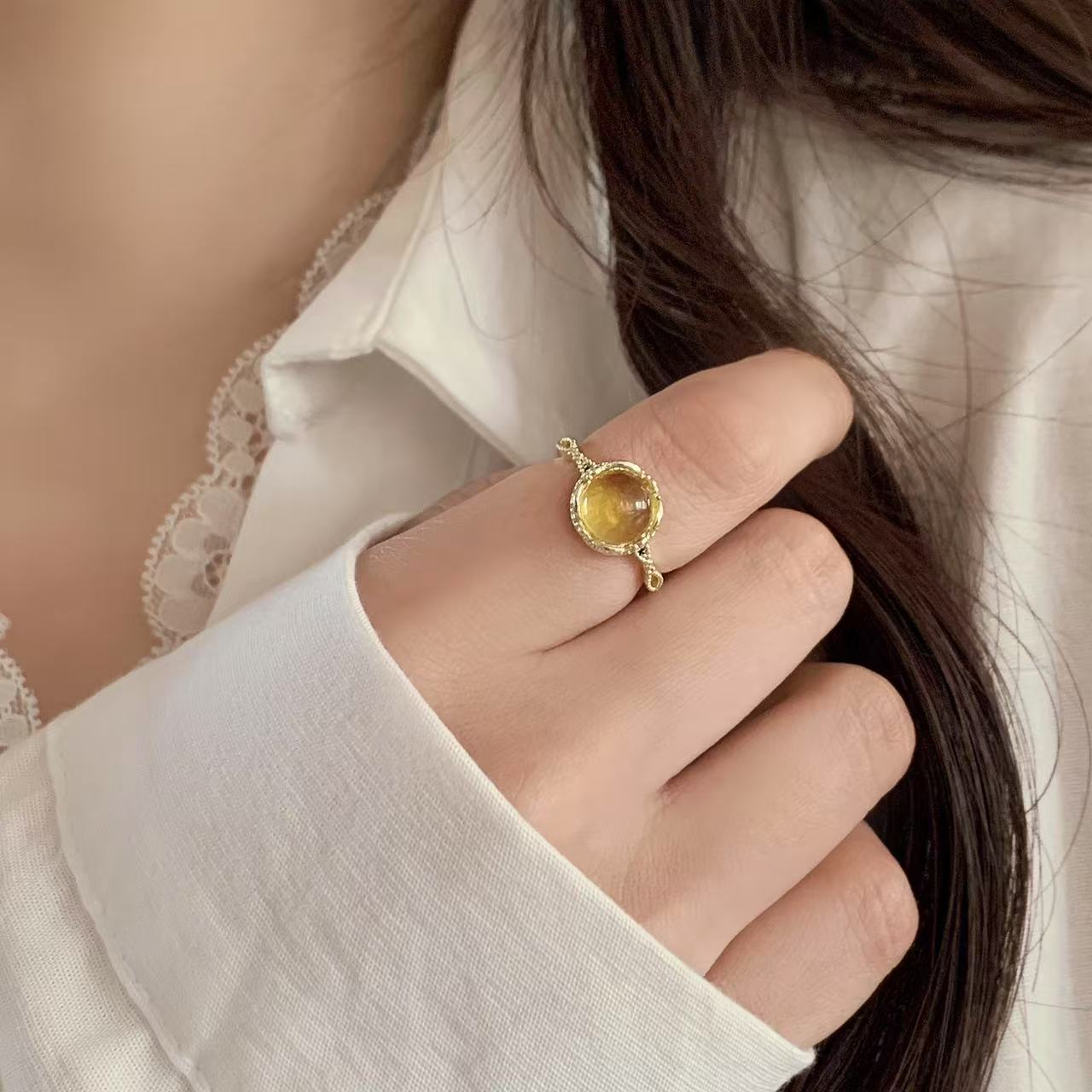Honey Money Unstoppable Goddess Casual Lace Pattern Cabochon Citrine Same Style Light Luxurious Easiest for Match Ring