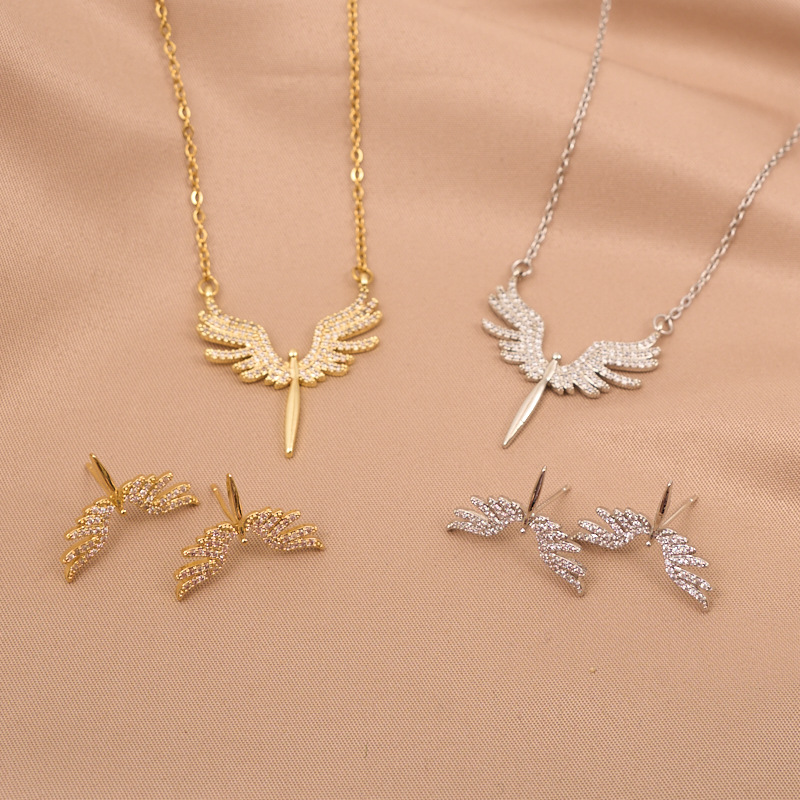 Micropaved Zircon Angel Wings Goddess Accessible Luxury Elegant Necklace Earrings Set