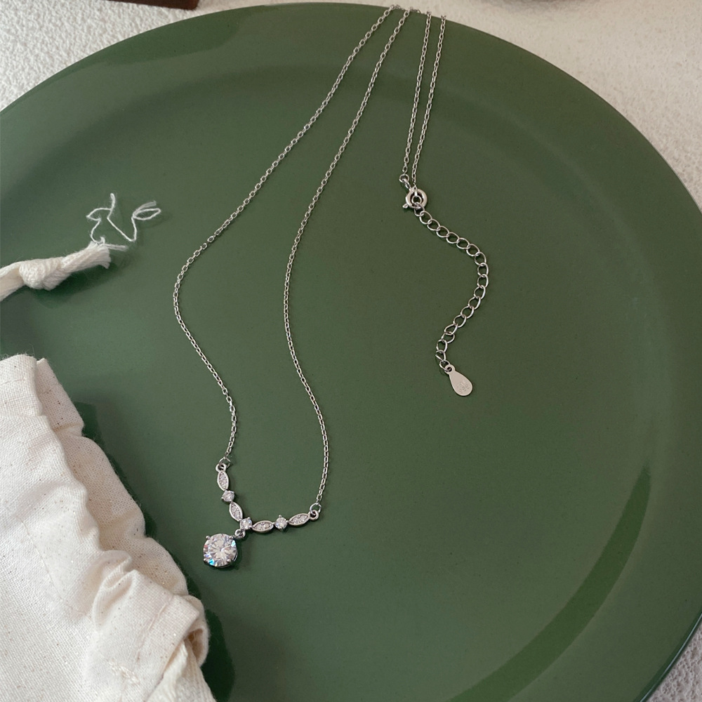 S999 sterling silver water drop zircon flower necklace women's light luxury niche design silver clavicle chain goddess festival gift