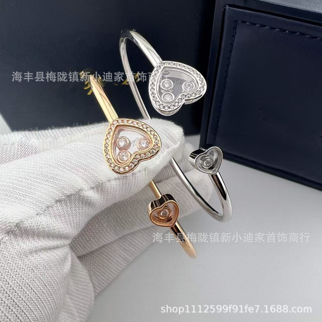 Seiko V Gold High-Quality Chopard Smart Goddess Peach Heart Bracelet Heart-Shaped Bracelet Rose Gold Elastic Double Heart Bracelet