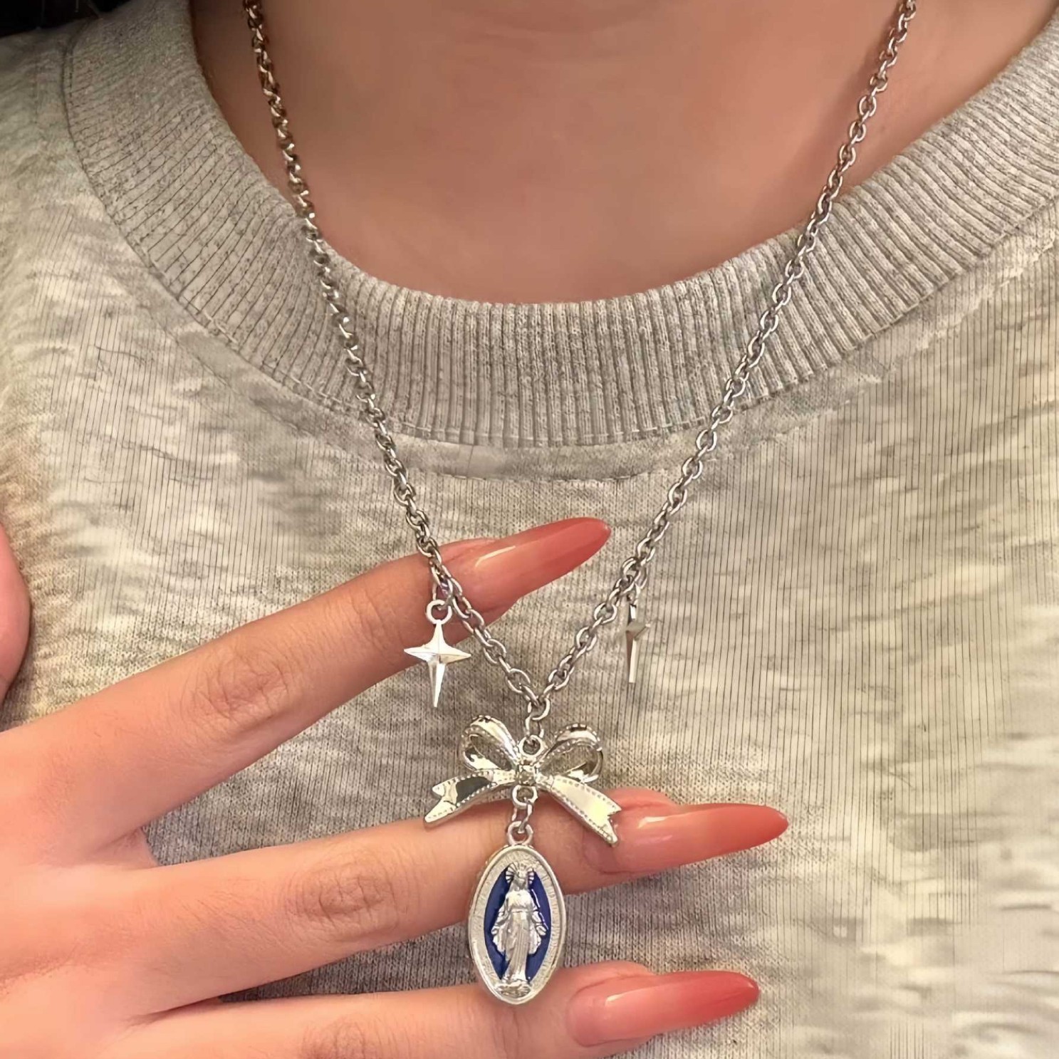 Korean Ins Style Bow Goddess Star Necklace Original Design Versatile Necklace Y2K Sexy Stylish Clavicle Chain