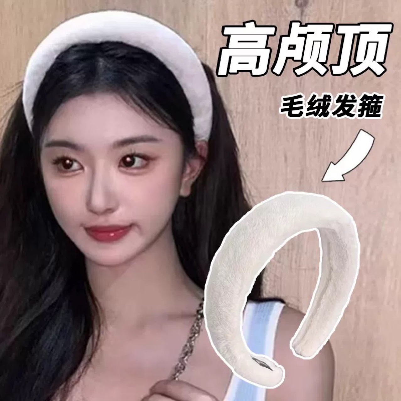 Autumn and Winter New Soft Hair Fluffy Headband High Cranial Top Retro Niche Sweet Simple Commuter Headband Hair Accessories Internet Celebrant