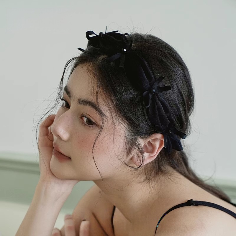 Ajidou Black Sense Wide-brimmed Cream Cake Goddess Headband Fold Bow All-match High Cranial Top Temperament Headband