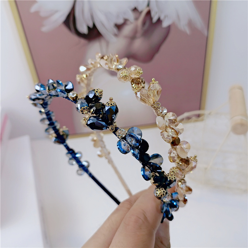 South Korea ins new fish line headband female banquet travel goddess fan headband socialite style high-end Crystal pressure hairpin