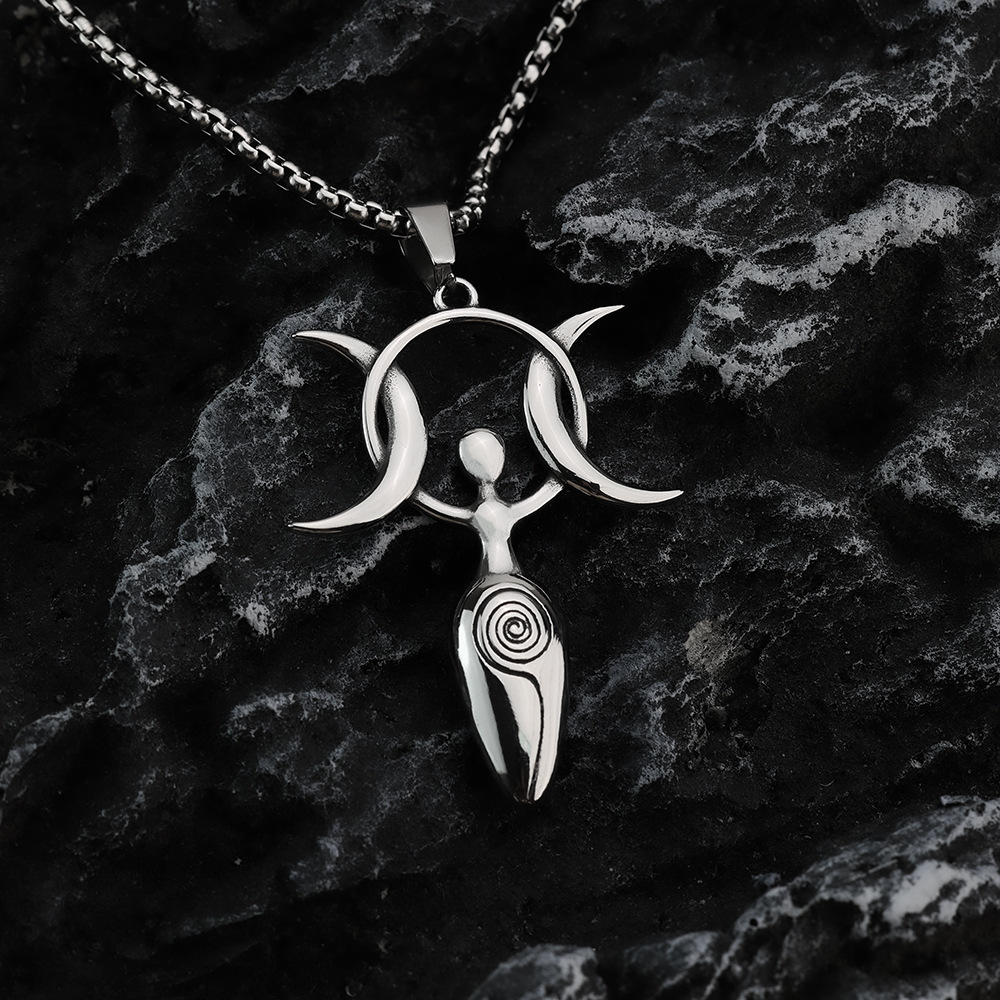 Cross-border popular ancient symbol Celtics witchcraft goddess necklace double moon totem pendant European and American necklace