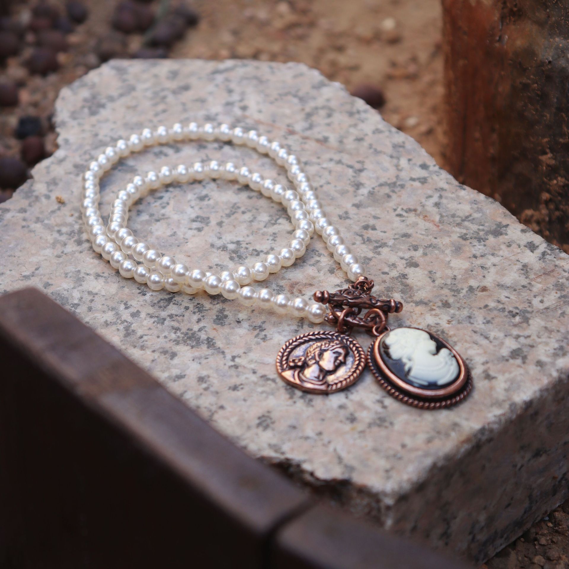US imported vintage beauty court wind Goddess beauty relief head pearl necklace bracelet