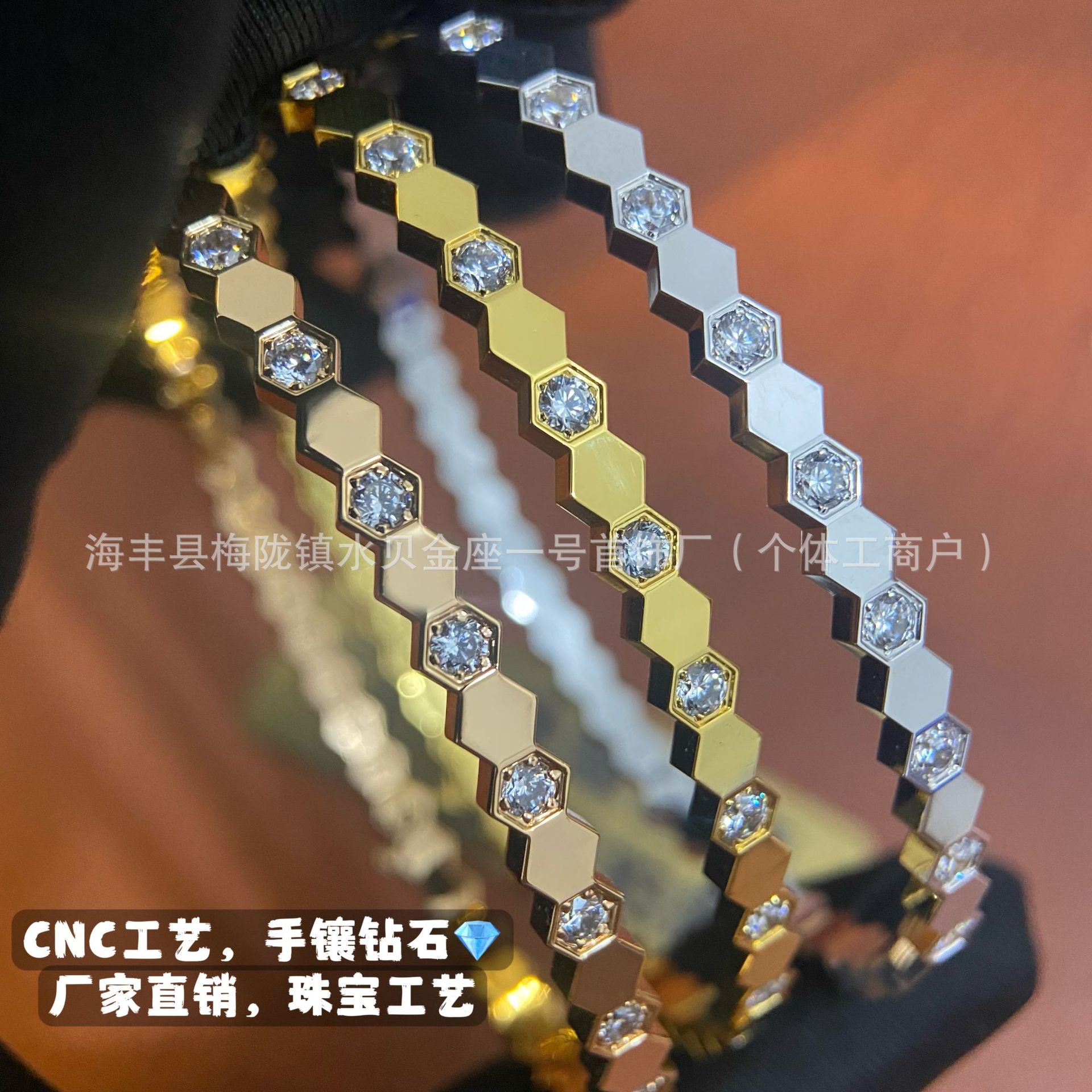 V gold CNC hand inlaid beehive bracelet female half diamond hexagonal goddess bracelet female niche design factory outlet