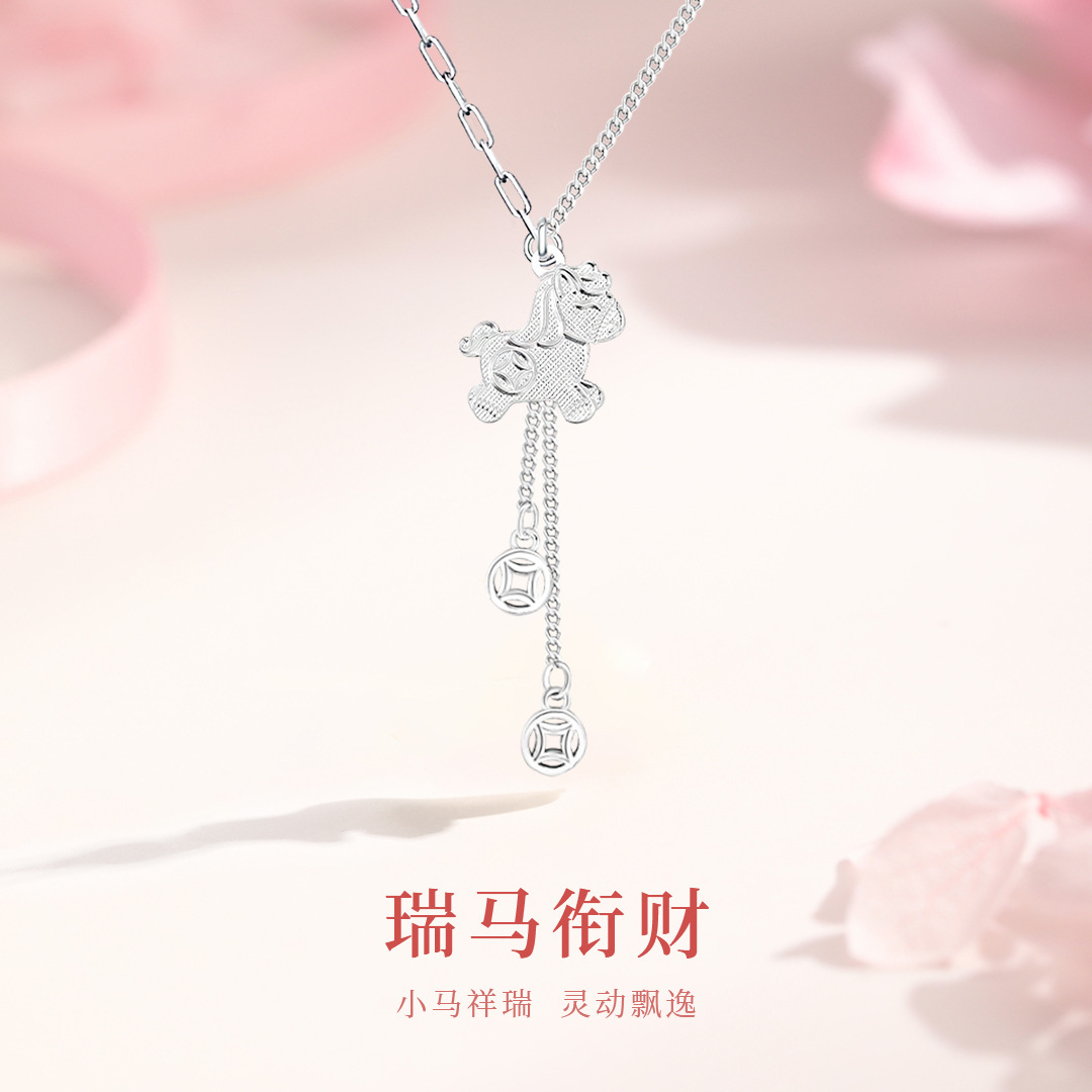 Get Rich Immediately Pure Silver Necklace for Women, 999 Sterling Silver, Chinese Style Pony Coin Tassel Choker, Light Luxury, High-End Feel, Goddess Style