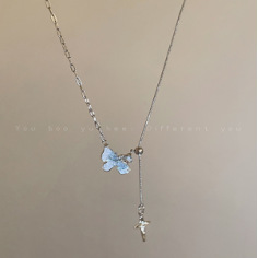 Exquisite crushed ice blue butterfly necklace women 2024 new fashion copper micro inlay light luxury temperament clavicle chain pendant neck chain