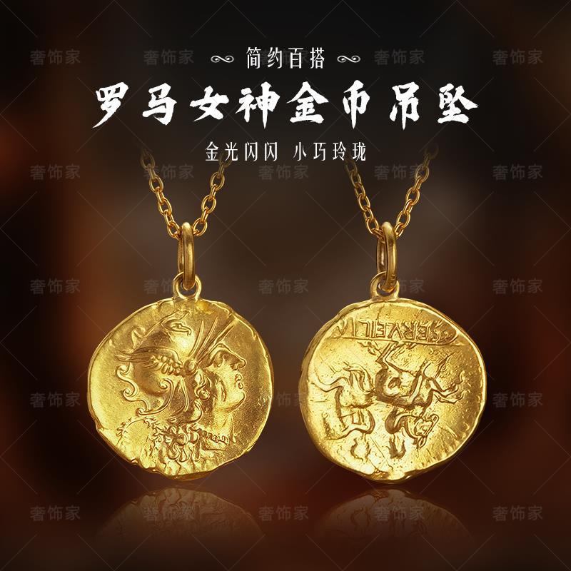 Ancient Gold Necklace Pendant Jewelry Roman Goddess Gold Coin Necklace Pain Gold Pendant High-End Light Luxury Niche