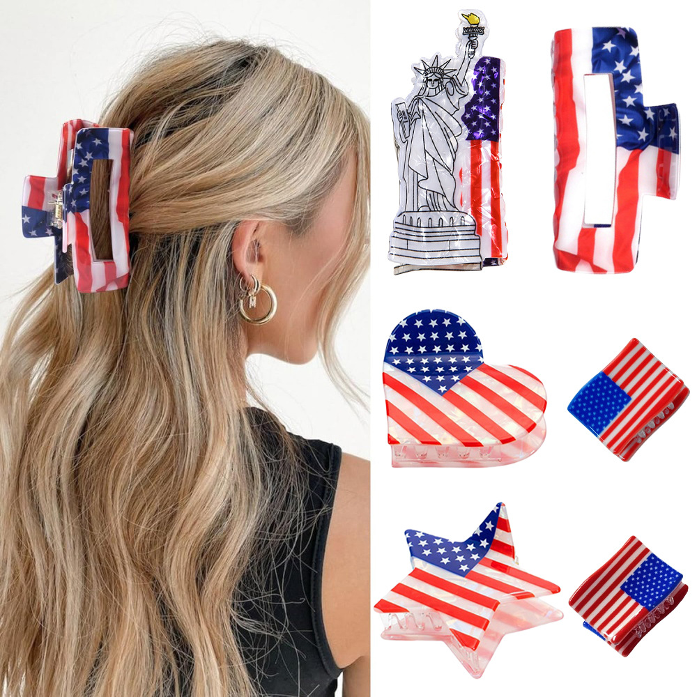 Cross-Border Independence Day Hair Accessories American Flag Clip Shark Clip Heart-Shaped Ponytail Clip Five-Pointed Star Hair Clip Hair Accessories