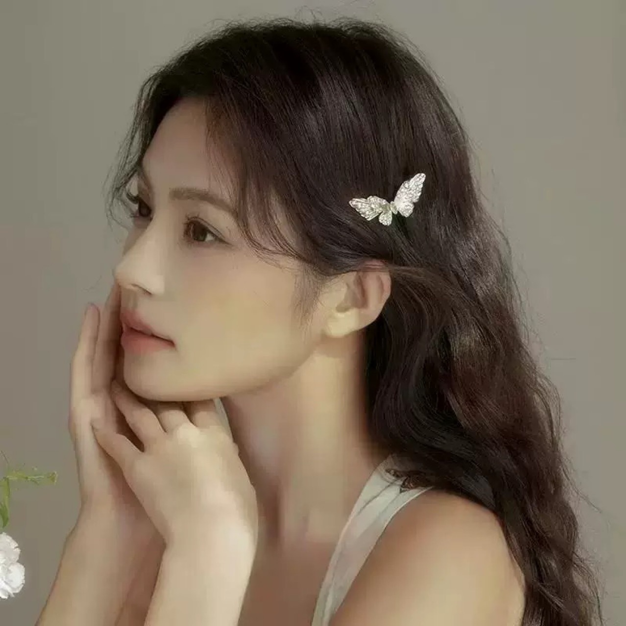French High-End Retro Butterfly Hairpin for Women, Exquisite Side Bangs Clip, Fairy-Like Elegant, Duckbill Clip Hair Accessory, Compact