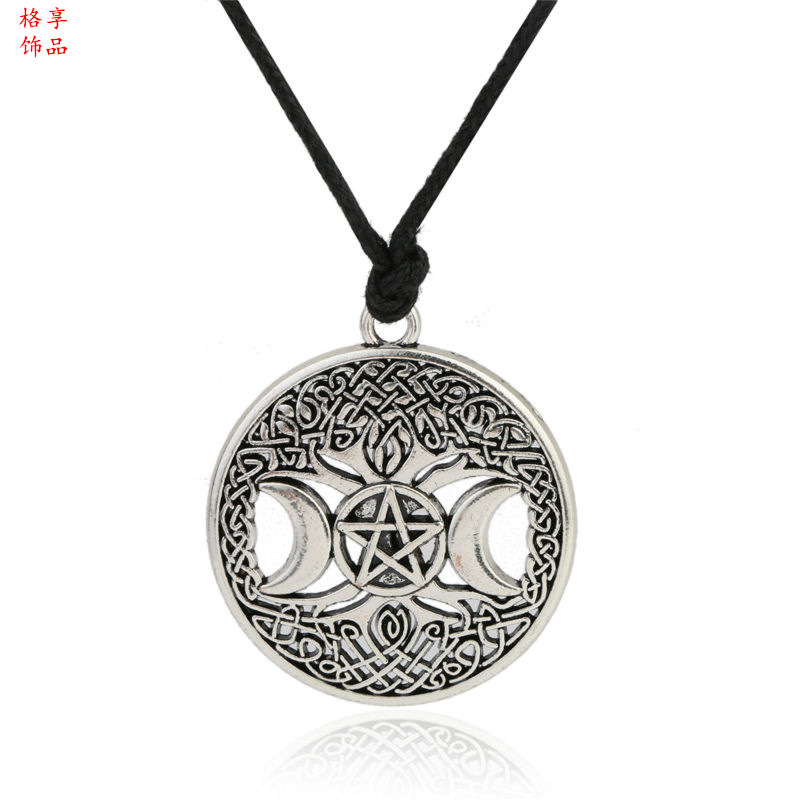 European popular Nordic Moon five-pointed star factory wholesale Source European goddess ancient silver alloy necklace