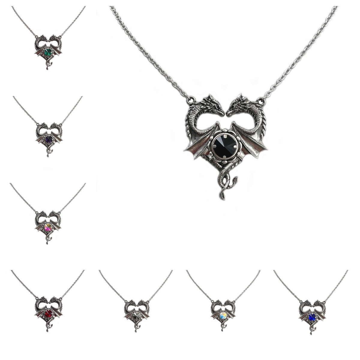European and American Crystal Dragon Heart Kiss Wing Couple Goddess Fantasy Viking Wedding Bride Gothic Necklace Creative Dragon Pendant