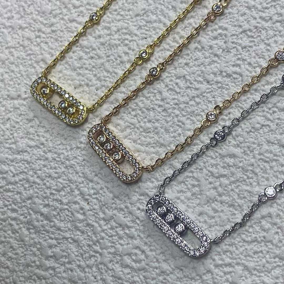 Meijia Three-Diamond Sliding Necklace for Women, Hollow Fashion Simple Style Goddess Essential Full Diamond Pendant Collarbone Chain