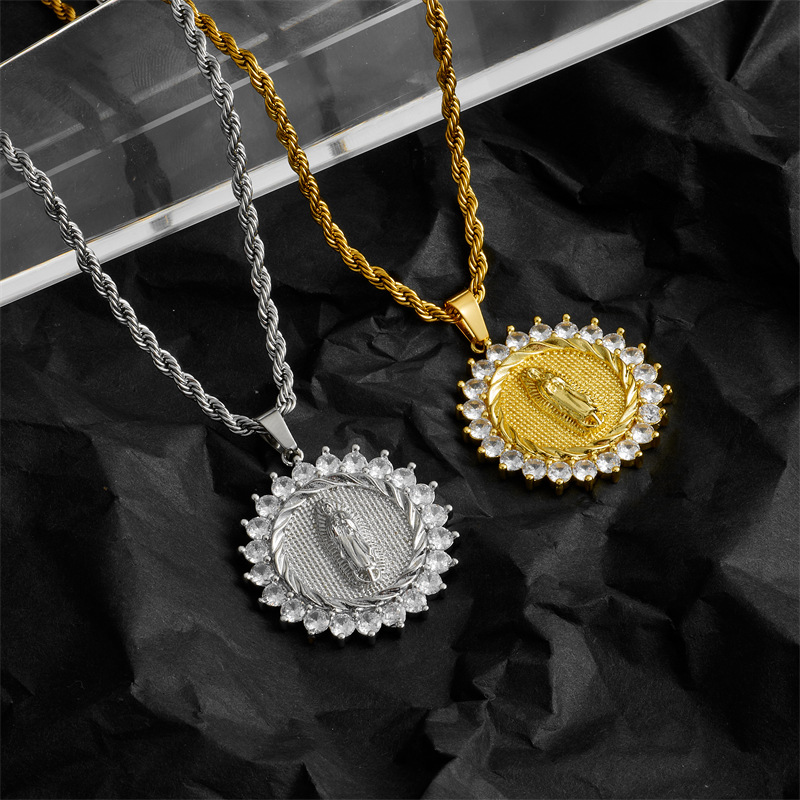 [Real Gold Plating] European and American Cross-border Religious Ring Goddess Head Pendant Necklace Temperament Light Luxury Niche Design