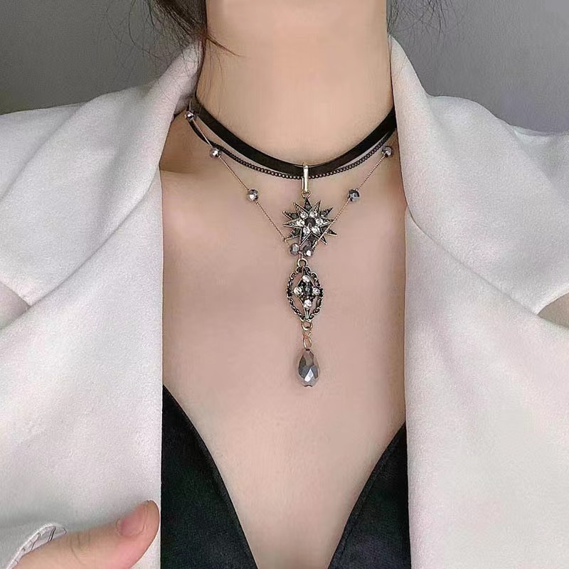 Niche dark multi-layer hollow Baroque necklace female choker temperament goddess exotic stacked clavicle chain necklace