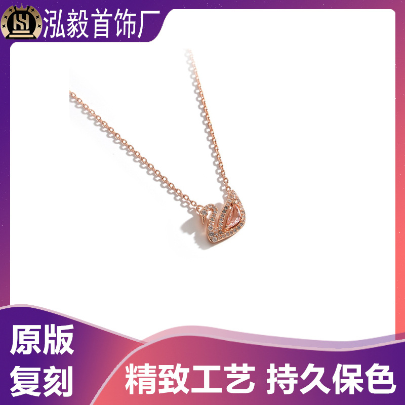 Shijia High Version 1:1 Pink Swan Goddess Comes with the Same Imitation Crystal Necklace for Women, Rose Gold Plated