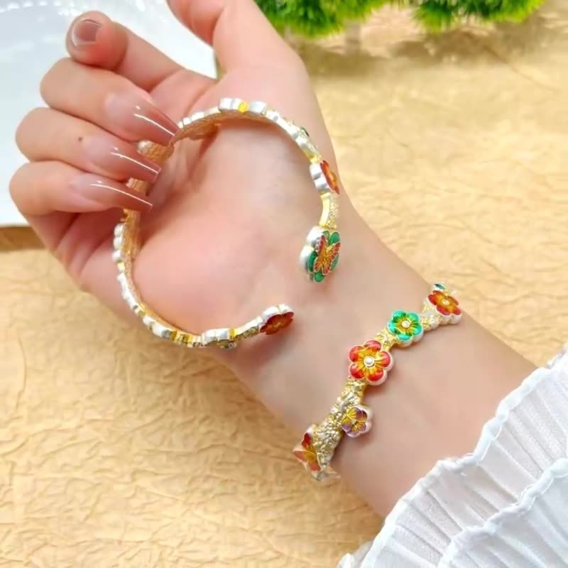 Chinese Style Enamel Palace Design Colorful Flower Bracelet for Women with a Sense of Design, High-Quality Chinese Style Goddess Day Jewelry Gift
