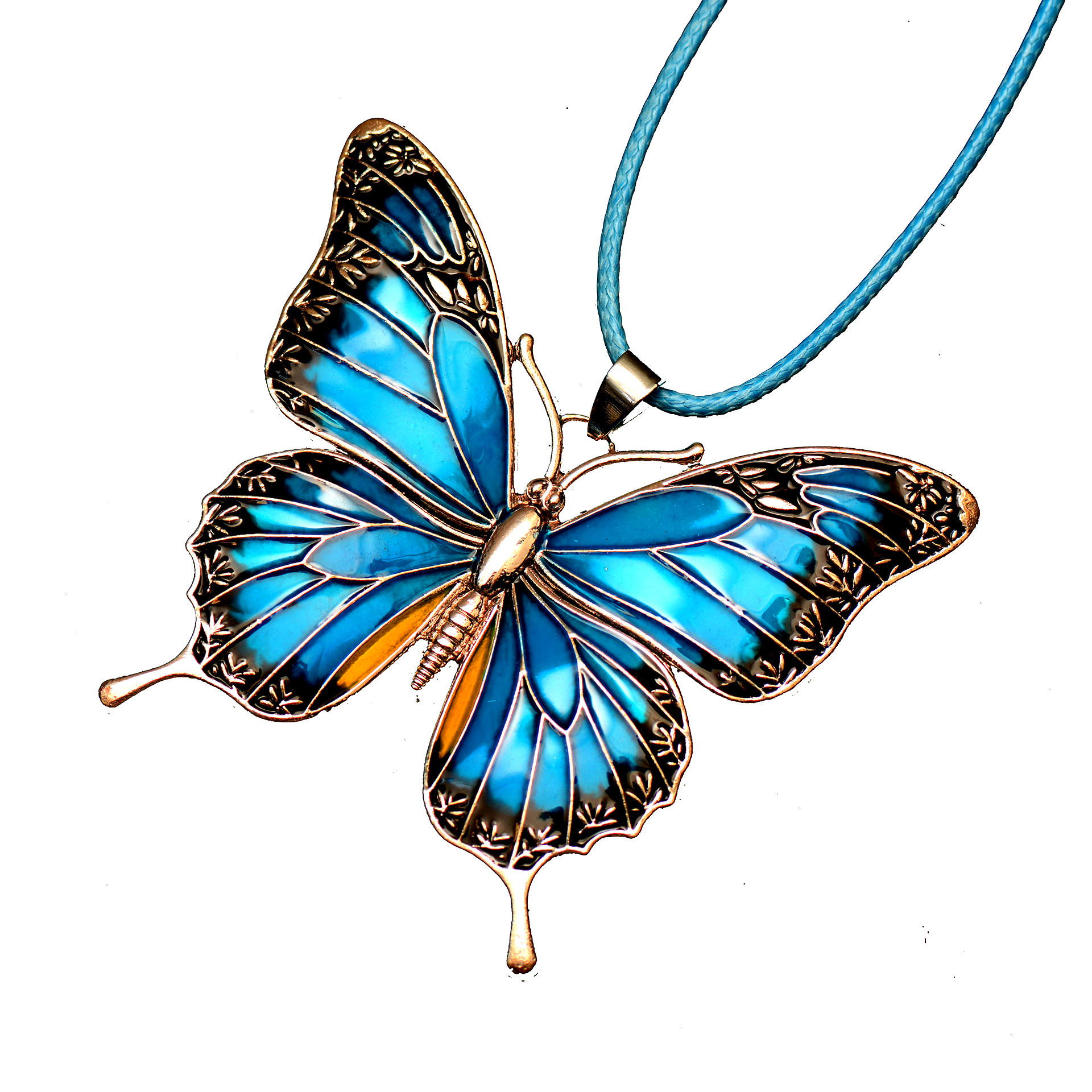 Cross-Border Colorful Transparent Goddess of Light Morpho Butterfly Eco-Friendly Sterling Silver Necklace Metallic Luster Cute Beautiful Niche Insect