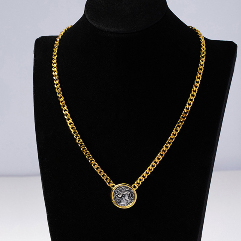 New Ancient Roman Necklace Lucky Goddess Coin Clavicle Chain Light Luxury High-End Long Retro Necklace for Women Wholesale