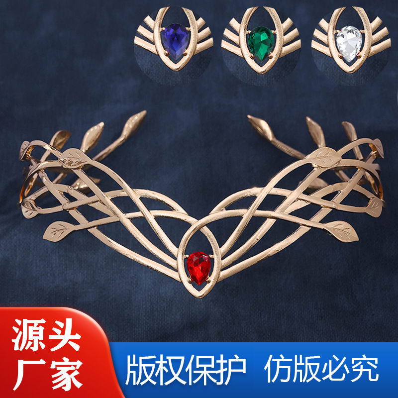 Creative New Cross-border European and American Goddess Warrior Leaf Headwear cosplay Headwear Alloy Secondary Diamond Headband