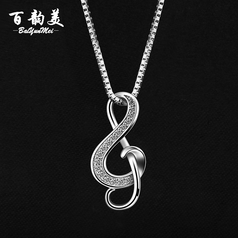 Baiyun beauty 925 silver necklace European and American goddess music necklace note pendant fashion silver jewelry