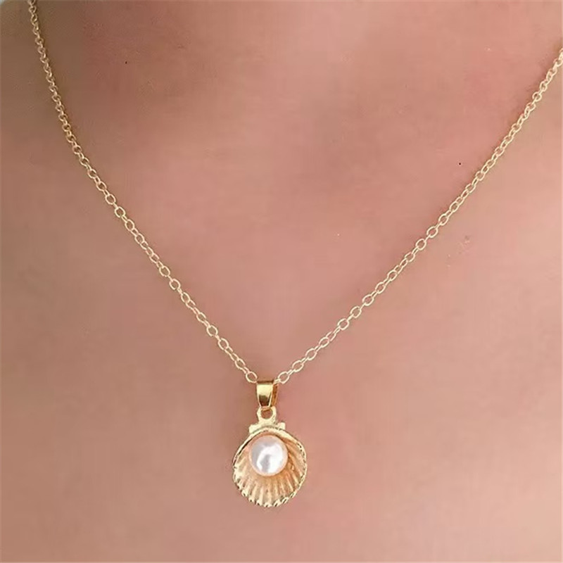 European and American Niche Ins Shell Pearl Necklace Women's Clavicle Chain Versatile Simple Pearl Fashion Goddess Clavicle Chain