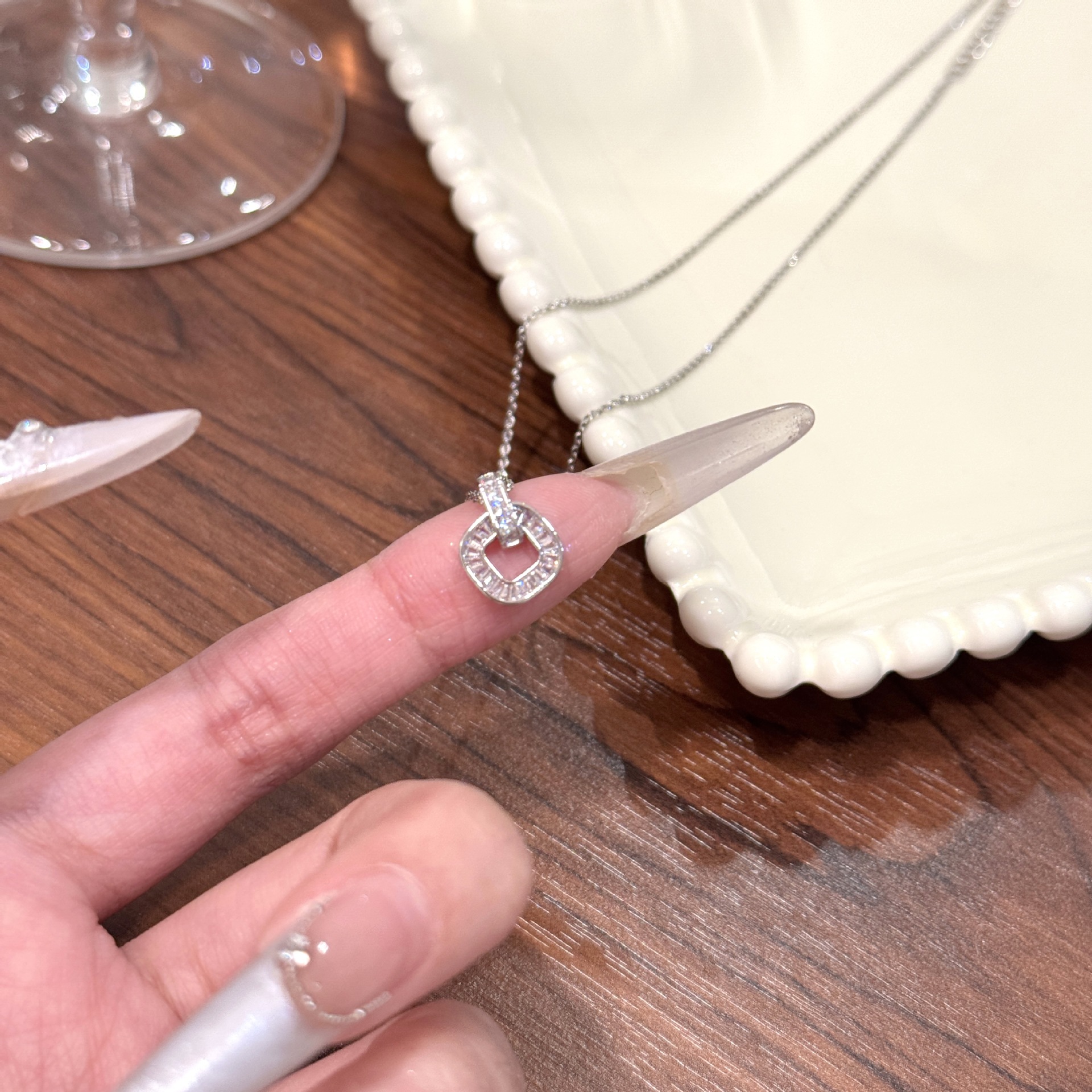 Mother's Day Goddess Jewelry Moissanite S925 Sterling Silver Crystal Square Necklace All-match Pendant Niche Design Gift Giving