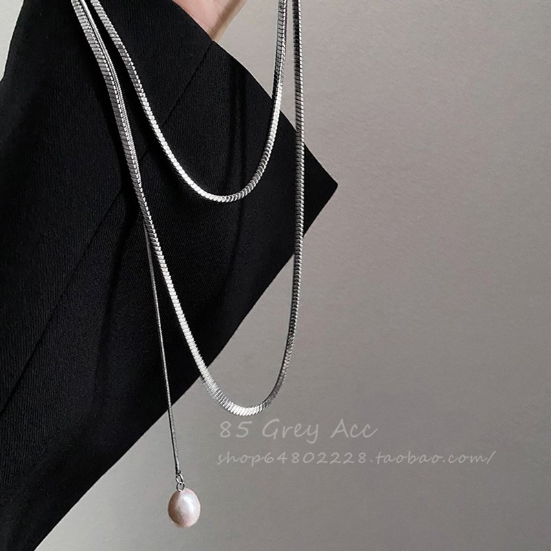 Layered Long Snake Bone Necklace for Women Ins Cool Style Sweatshirt Sweater Chain Hip-Hop Sweet Cool Sexy Clavicle Chain Accessories