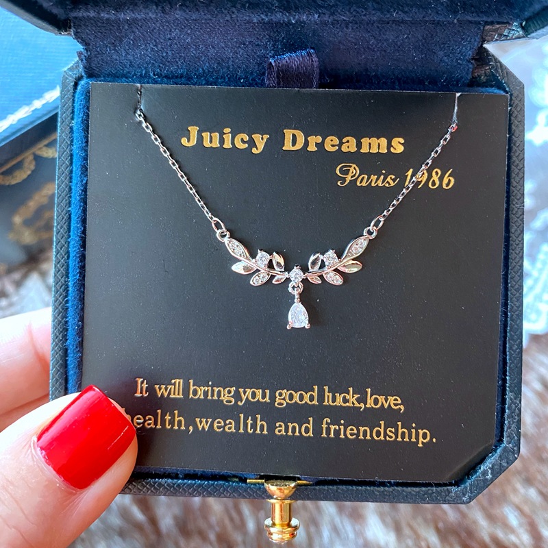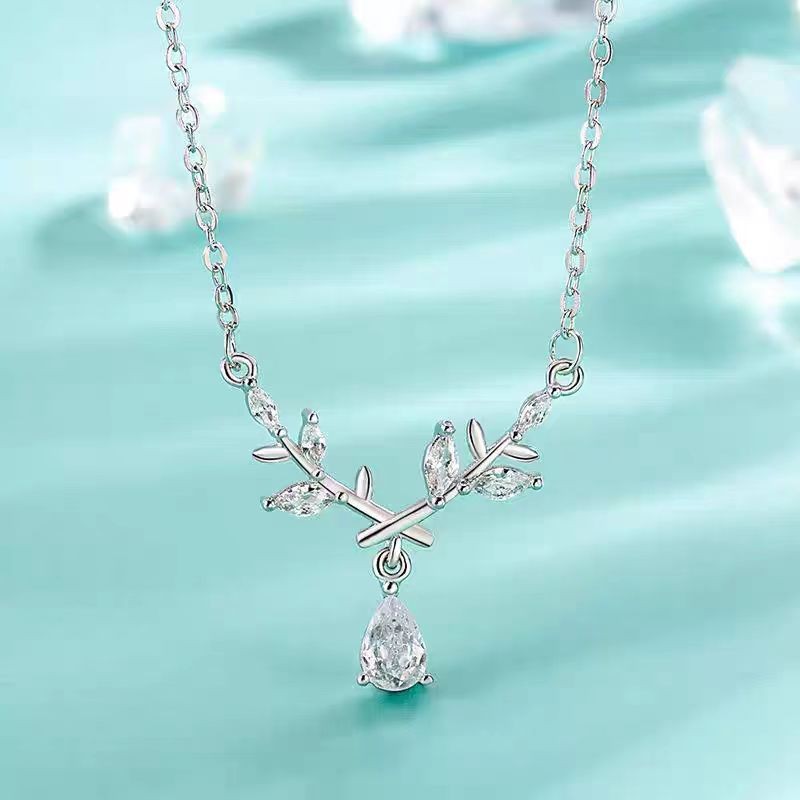 Diamond-Encrusted Water Drop Necklace, Laurel Branch, Accessible Luxury, Niche Goddess, High-End and Exquisite Gift for Girlfriend, Clavicle Chain Necklace