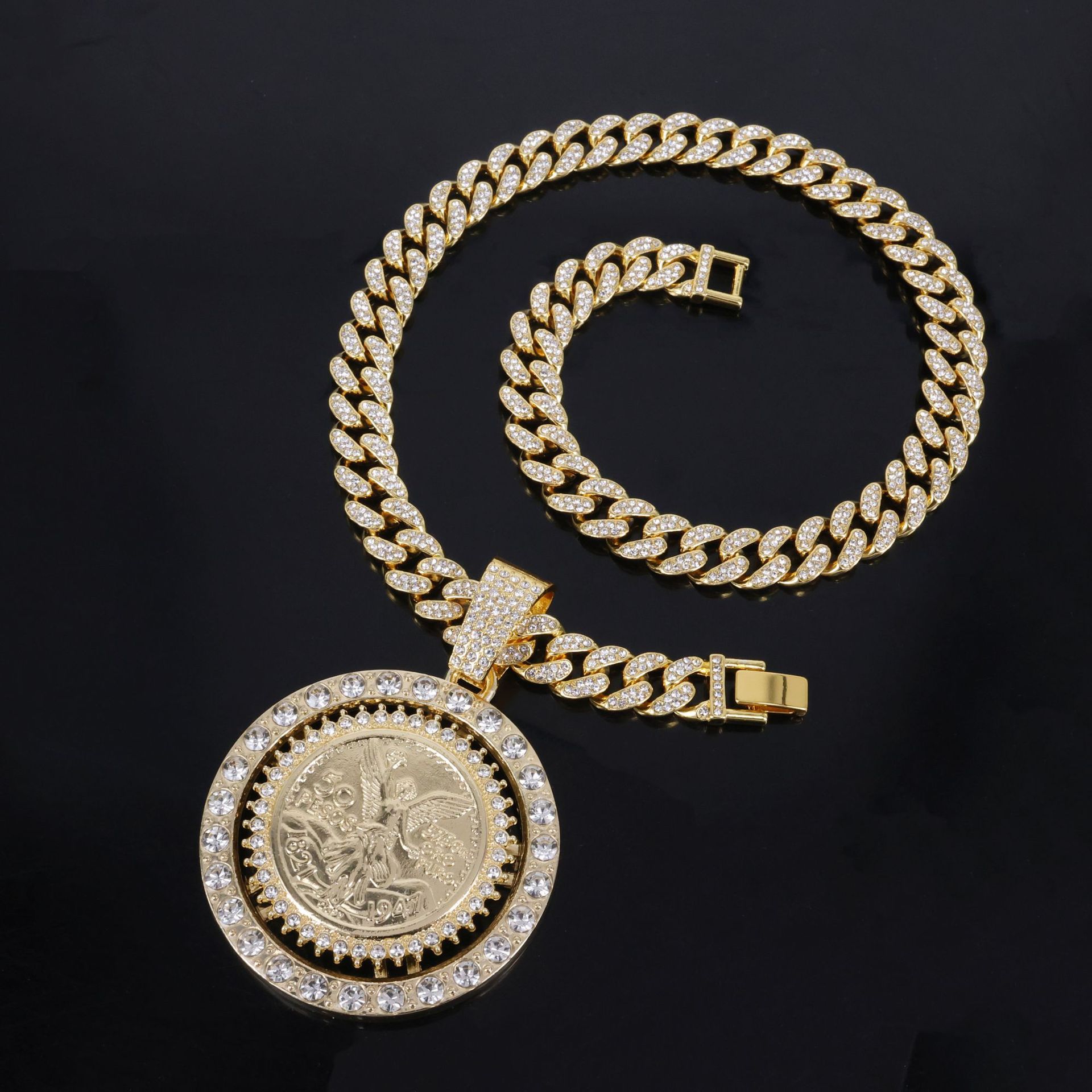 Hot Selling European and American Cool Rotatable 62mm Statue of Liberty Full Diamond Pendant Hip-Hop Men's Necklace Jewelry Wholesale