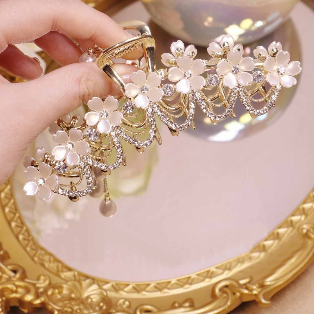Wave Flower Rhinestone Tassel Hairpin Goddess Sense High-end Hairpin Shark Clip Headdress Hairpin Summer