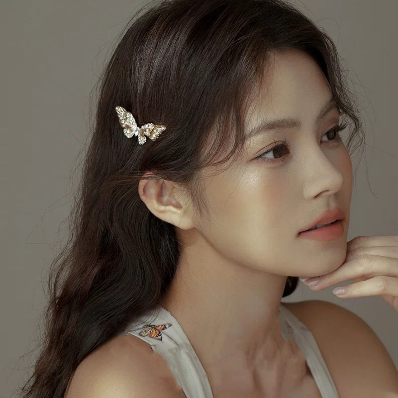 Golden String Goddess ~ French Butterfly Small Hairpin High-grade Vintage Bangs Broken Hair Duckbill Clip Side Clip Hairpin Hair Accessories