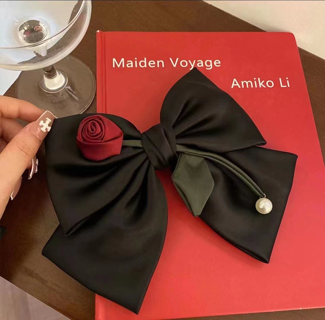 Love rose Black big bow hair accessories 2023 new high-end elegant hairpin goddess back head spring clip