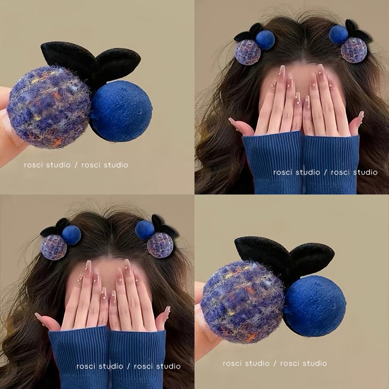 Blue Cherry Hair Clip for Women, Half-Tied Hair Clip on the Back of the Head, Autumn and Winter Girl Hair Ball Bangs Clip, Side Clip Hair