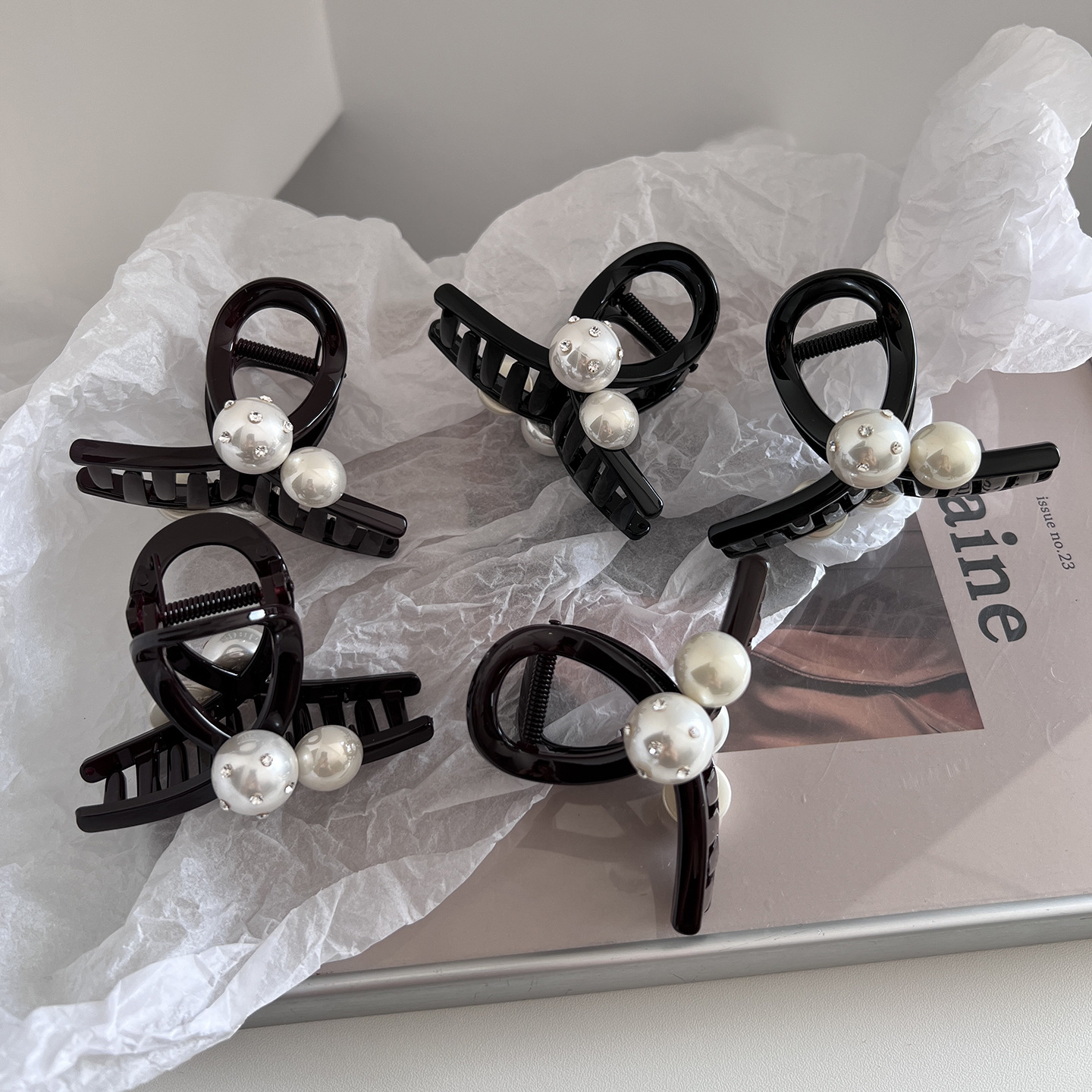High-end hair accessories [toffee] temperament Joker French romantic simple fashion beads medium size clip women