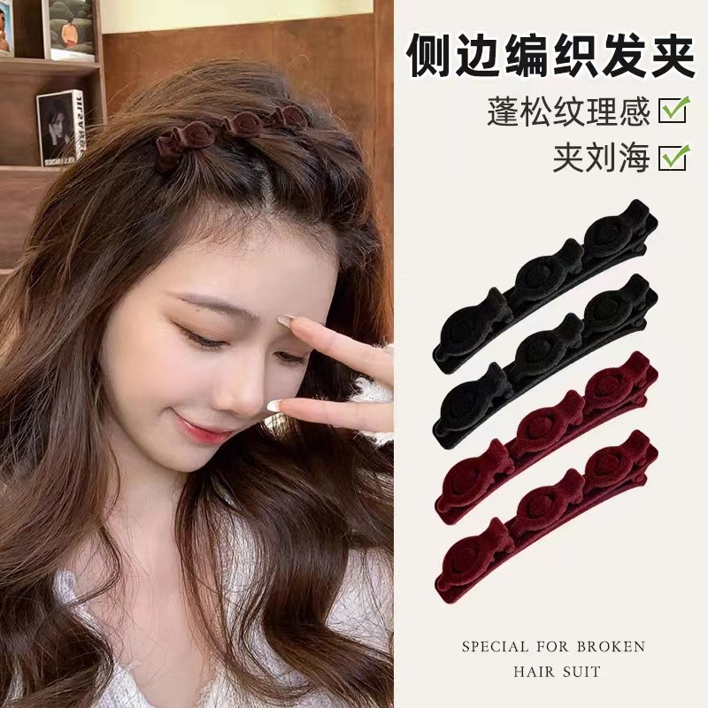 Flocking braided hairpin female artifact velvet side clip new high-end forehead bangs Internet celebrity clip head hair accessories hairpin