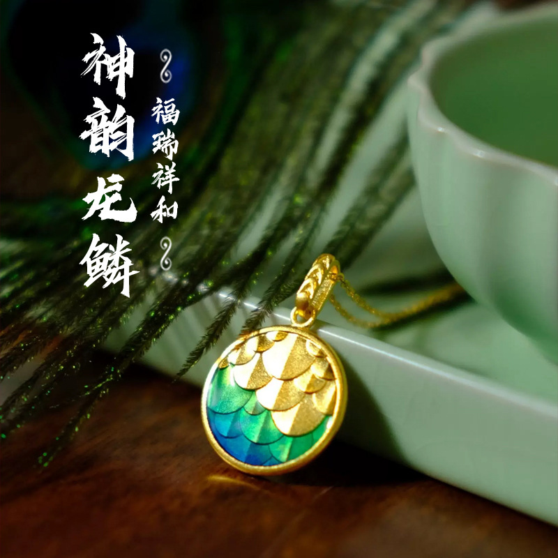 Sha Jin Hongyun Lifting Body Protecting Scales Imitation Gold Pendant Necklace Goddess Rhyme Dragon Scales Enamel National Style Heritage Accessories
