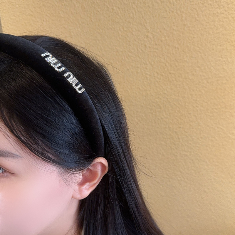 Autumn and Winter New Velvet Solid Color Samuel Letter Flash Diamond Headband Fashion Cute Headband Daily All-match Niche Headwear Women