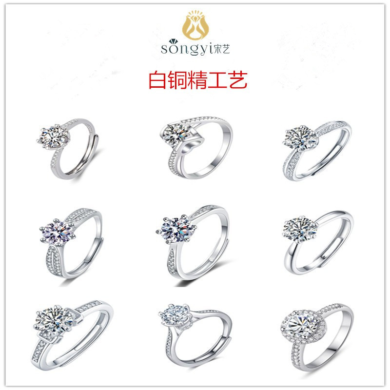 Tiktok Kuaishou online live broadcast diamond six-claw ring 1 karat eight hearts and eight arrows classic goddess ring wholesale