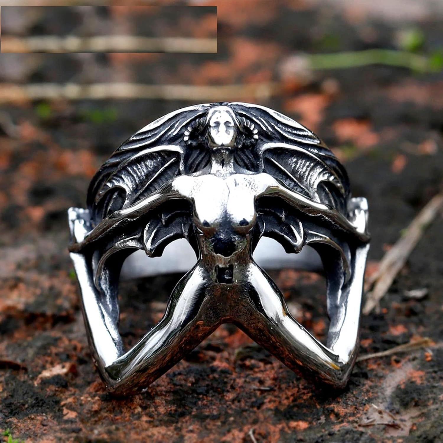 Amazon Gothic Viking Alloy Demon Goddess Ring Wholesale New Retro European and American Personalized Human Ring