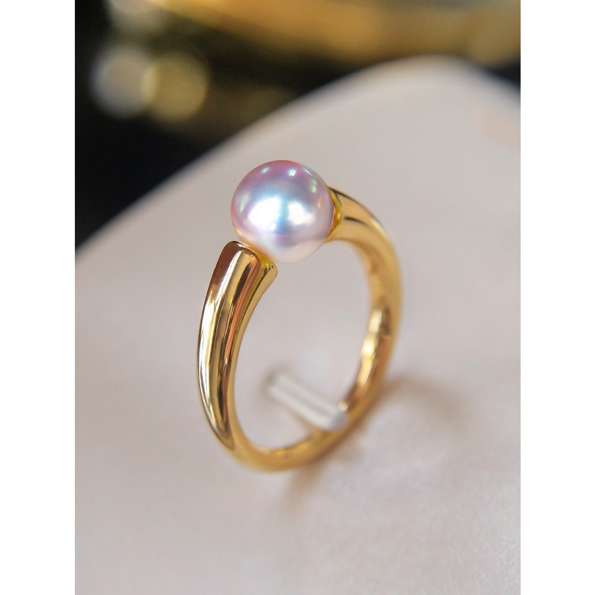 New Gap Ring Wall Pearl Opening Ring Women's Retro Style Elegant Goddess Ring Gold-plated Fashion Joker