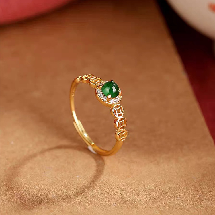 Gold-plated wealth source Rolling Sky chalcedony ring light luxury copper coin egg pasta finger ring goddess festival gift