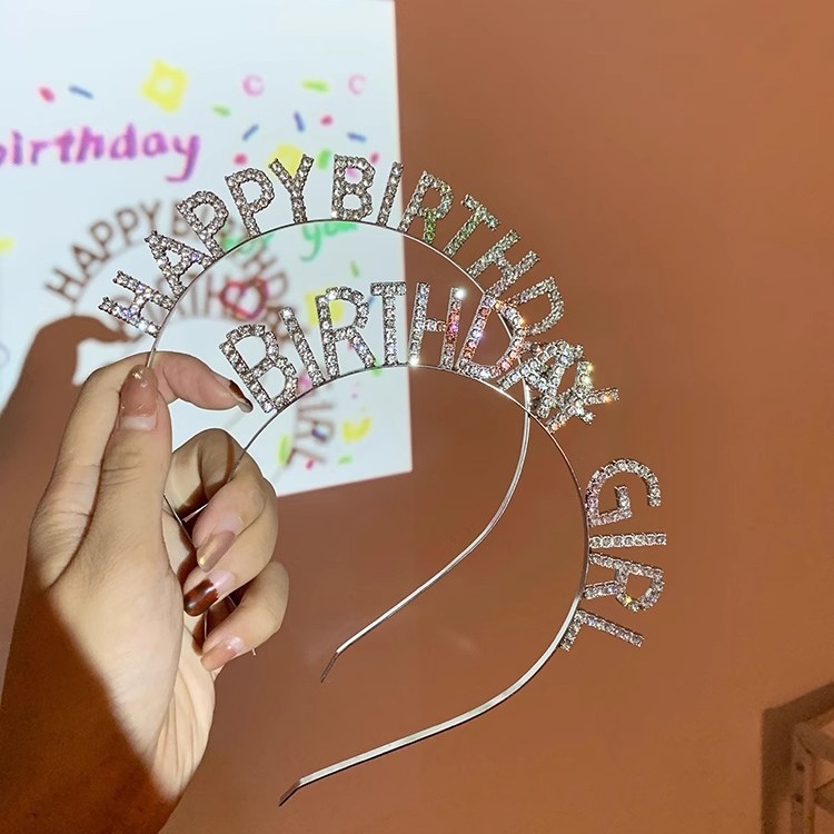 Super Flash Rhinestone Happy Birthday Hair Hoop Goddess Princess Party Hair Card English Fairy Photo Props Headband Hair Accessories